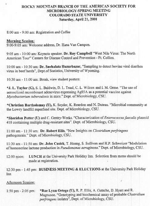 the Rocky Mountain Branch of the American Society for Microbiology,